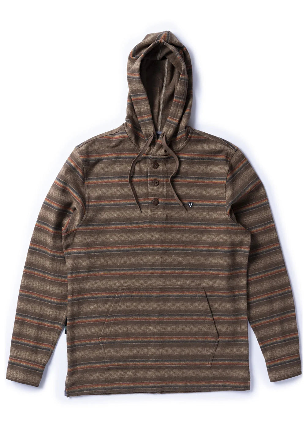 Stay cozy on those chilly mornings with the Vissla Descanso Hooded Popover. This soft brushed heavyweight hoodie will keep your core warm, while the Mexi-Cali inspired design adds a touch of style. Featuring a 6" button down placket, hood with drawcord, and a kangaroo pocket, this hoodie is both functional and fashionable. Take on the day with ease thanks to the heavy garment wash that gives a perfectly worn-in feel.